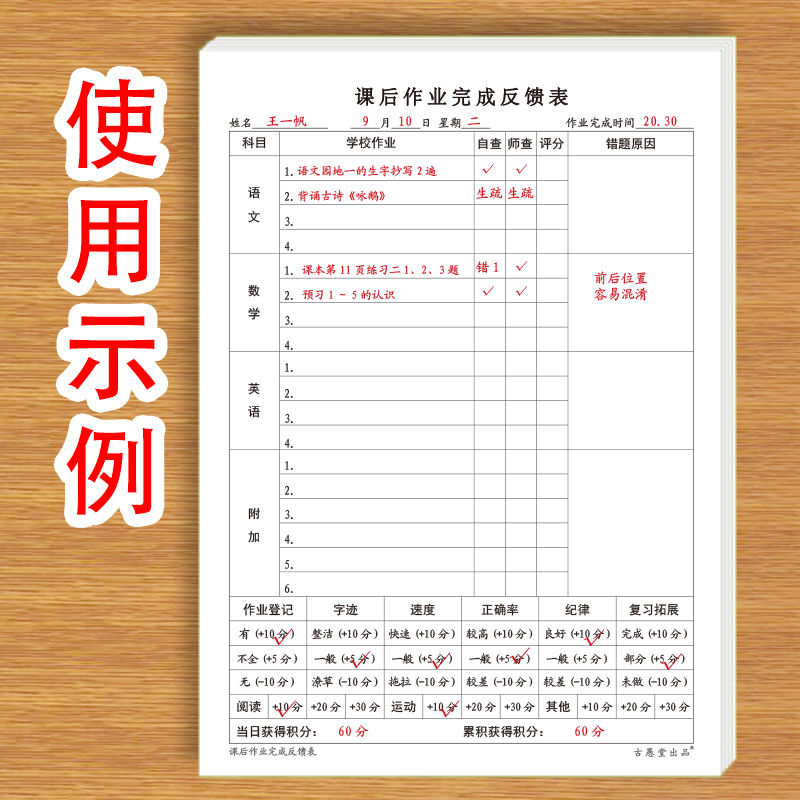 课后作业完成反馈表通用版语数英课后作业登记分析错题原因纪律复