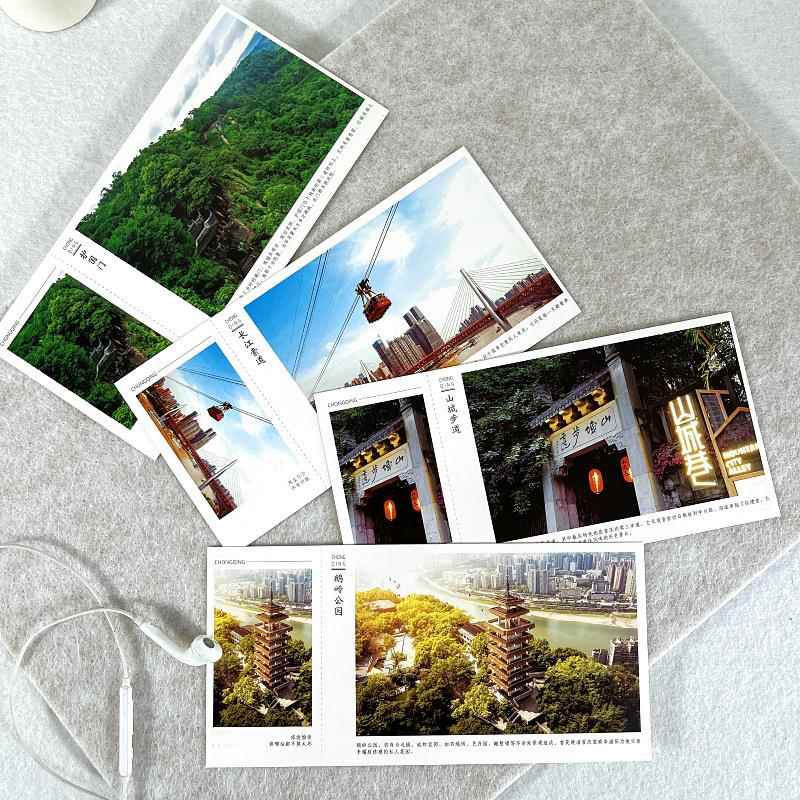 重庆美景打卡明信片旅游攻略鸿恩阁大足石刻白帝城望乡台瀑布贺卡