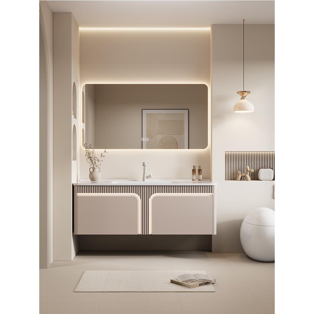 奶油风浴室柜陶瓷一体盆组合智能镜柜卫生间洗漱台洗手盆洗手台饰品