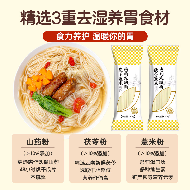正宗茯苓薏米山药龙须面淮山面条铁棍挂面细面营养早餐代餐旗舰店