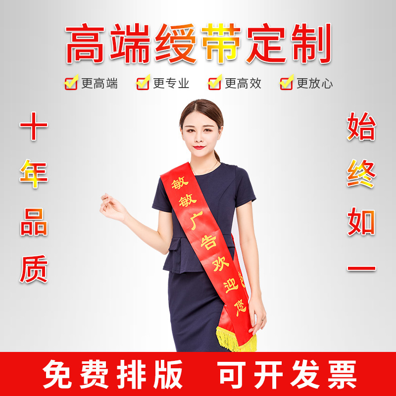 绶带定制成d人儿童学生迎宾彩带肩带志愿者授带礼仪带定制宣传带