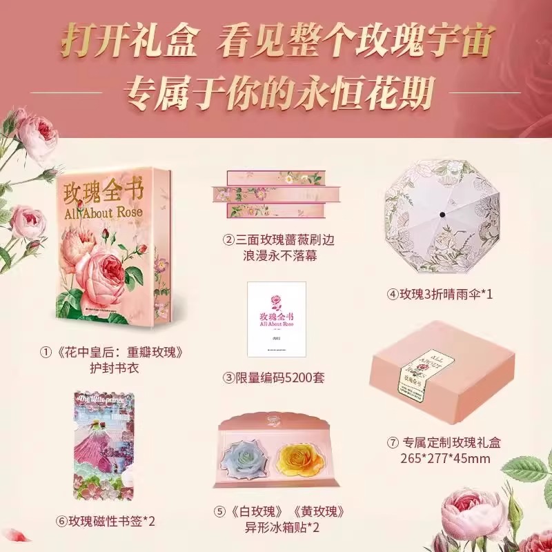 官方正版 玫瑰全书限量编码版浪漫永恒礼盒典藏特装刷边 吕影著 赠玫瑰折叠雨伞+冰箱贴+磁性书签+玫瑰礼盒给优雅盛放浪漫生活的你