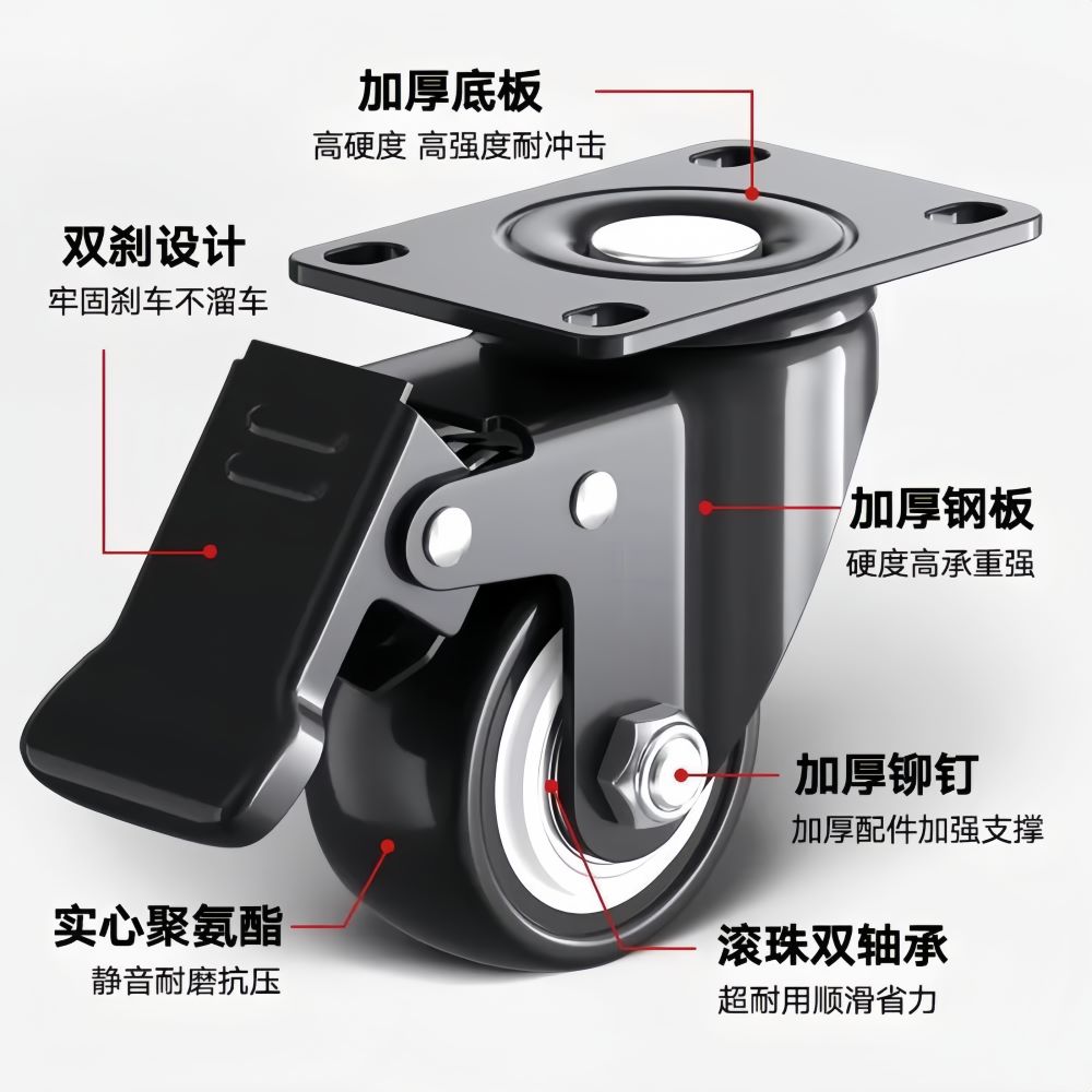 3寸2.5寸2寸低重心脚轮超重型承重万向轮尼龙带刹车工业滑轮轮子