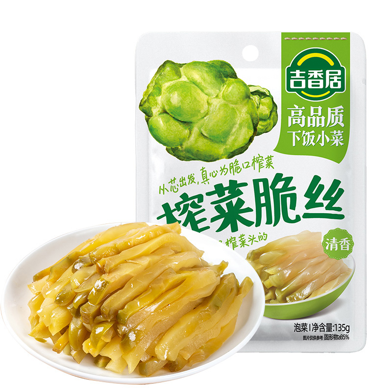 吉香居135g榨菜真芯鲜香原味香辣萝卜微辣清淡脆口菜芯脆丝小菜
