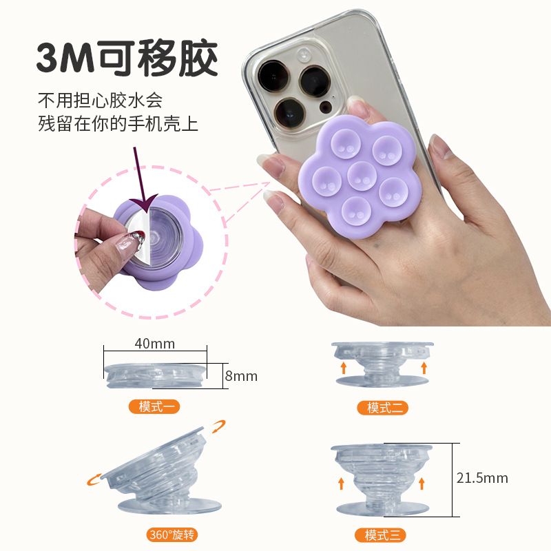硅胶爱心气囊支架手机指环扣可伸缩折叠随身便携粘贴桌面支架定制