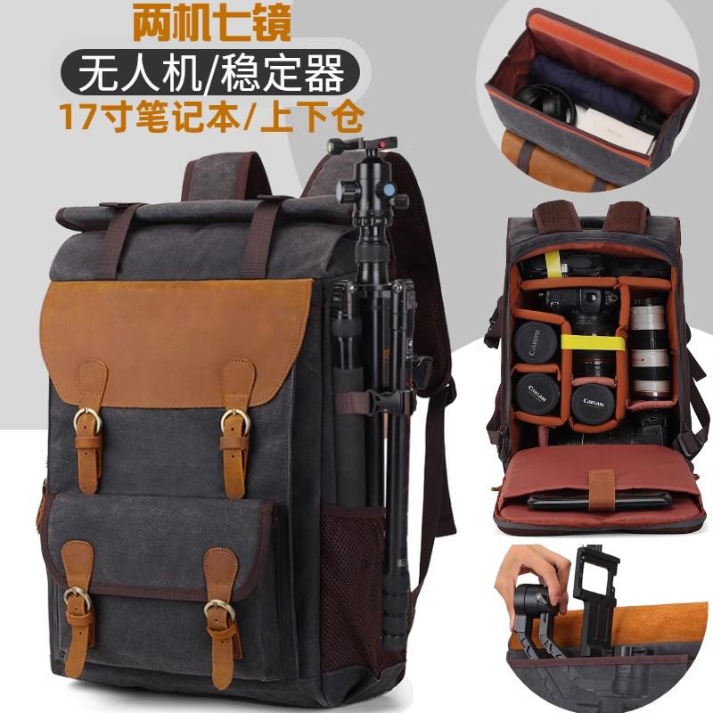 防水摄影包双肩相机包稳定器无人机17.3寸游戏本一体包帆布大容量