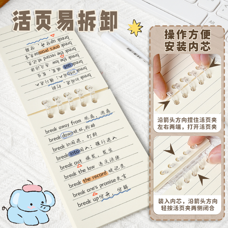 B5不硌手活页本可拆卸笔记本本子简约线圈大学生初中生高中生专用加厚替芯纸外壳考研横线本扣环a5记事本文具