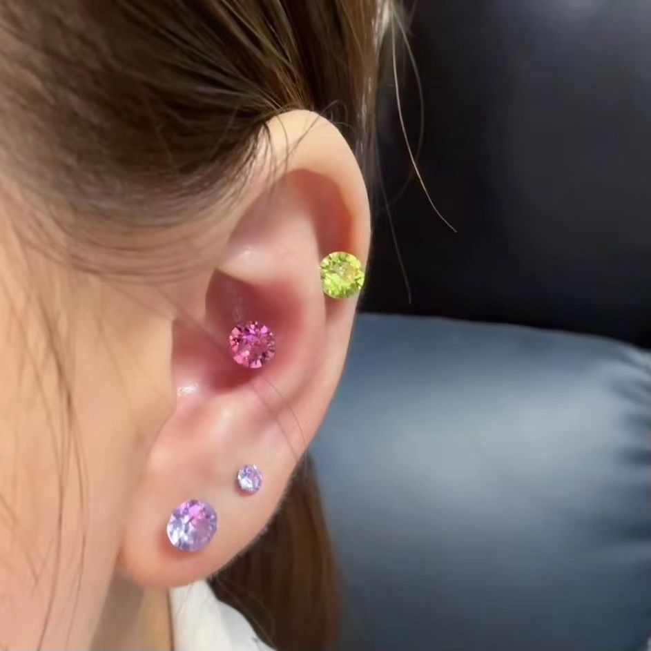 「HALU」6mm爆闪耳钉钛钢彩色百搭不易过敏耳蜗耳骨钉抗过敏耳环