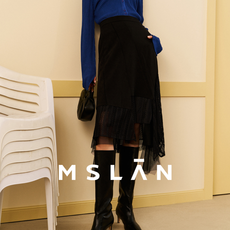 【蕾丝拼接】MSLAN春季复古柔软不规则下摆半身裙裙子MEDE8205