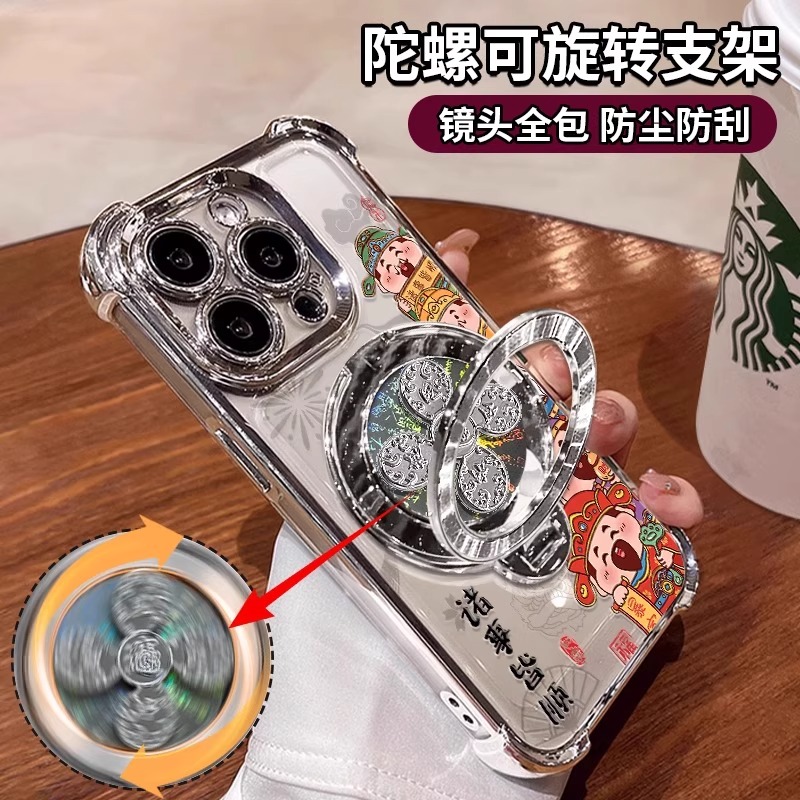 财神风生水起支架适用苹果17promax手机壳16新款iphone15pro保护套14p潮男透明四角13防摔12全包11女电镀por