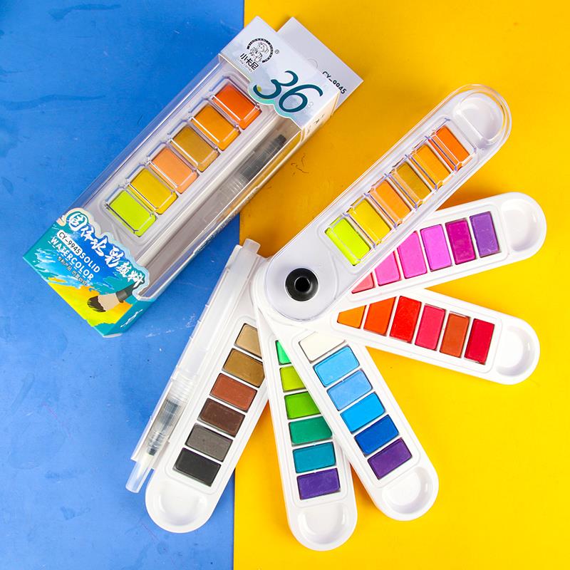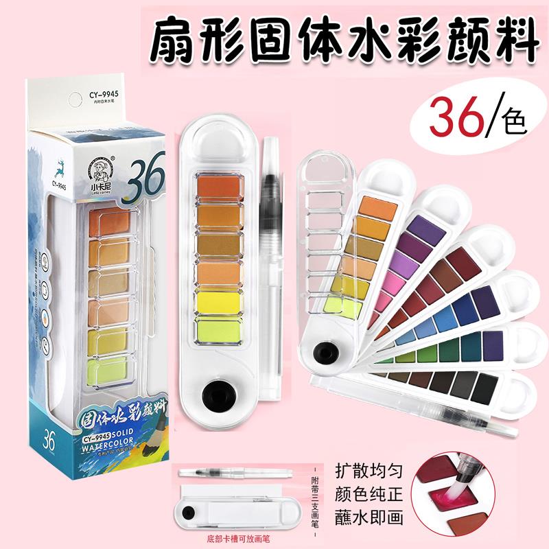 扇形盒装固体颜料12色便携水彩颜料工具学生画画初学者美术专业36
