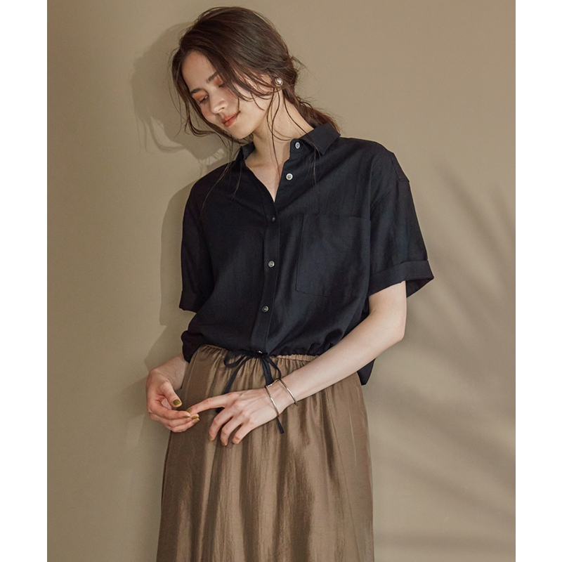 23区SLOW时尚气质适宜亮色亚麻短款衬衫女ONWARD