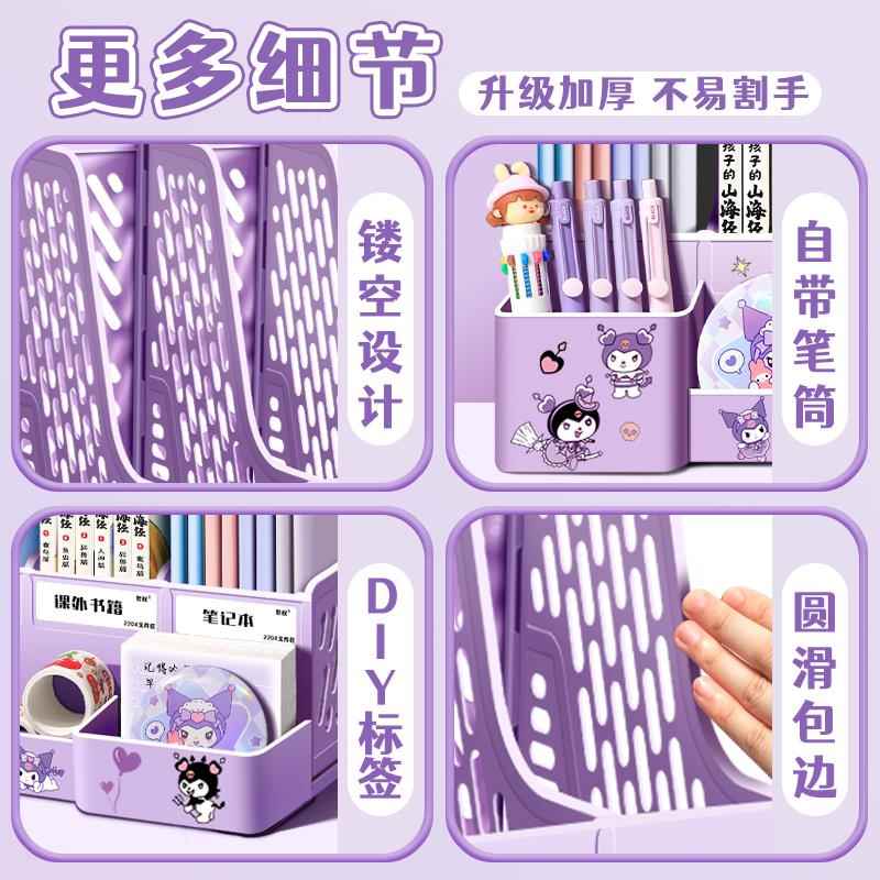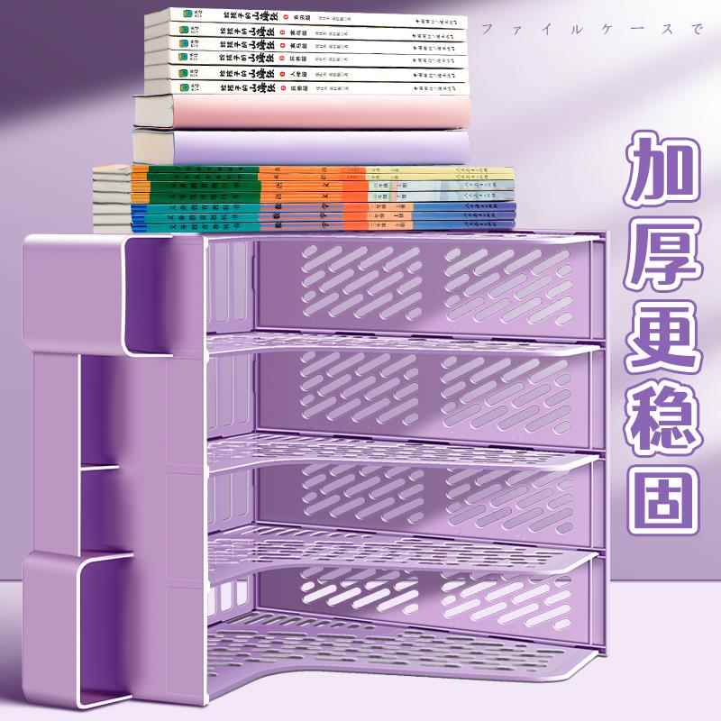 文件夹收纳书架桌面桌上书立架儿童学生书本A4四联小文件框筐立式置物架不占空间多层办公桌书桌文件栏收纳盒