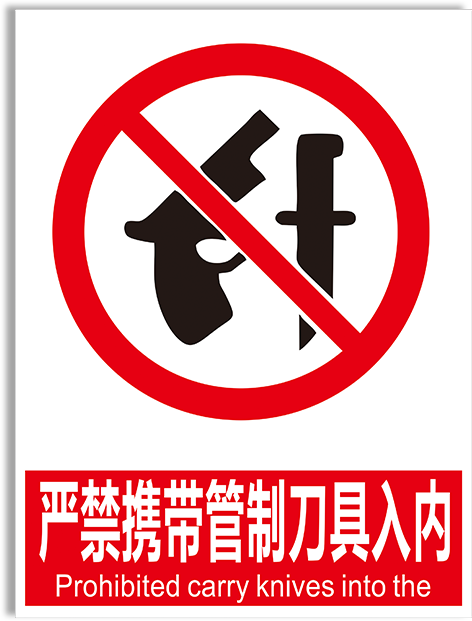 禁止携带管制刀具入内标识牌 注意不准严禁按照要求车间验厂消防安全警示提识标示志牌铝PVC板墙帖纸广告宣传