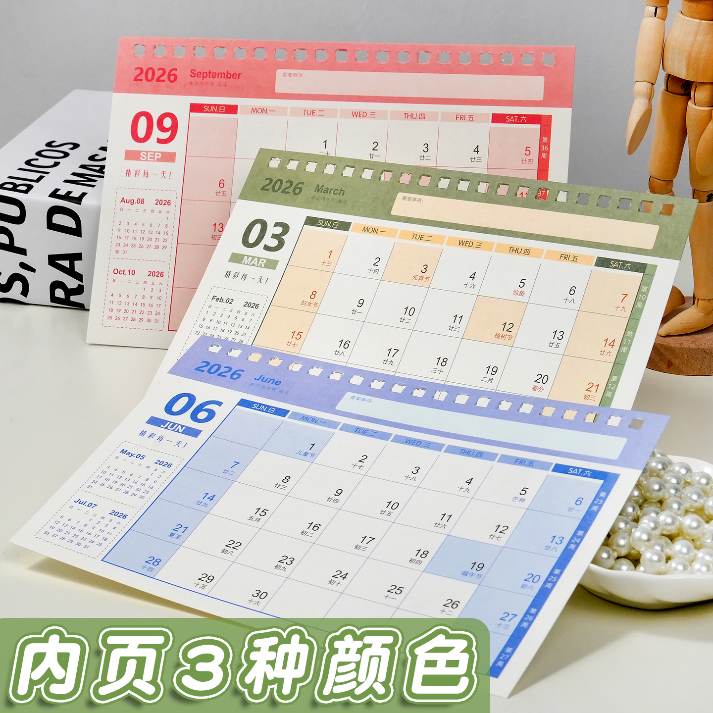 台历2026年新款创意简约办公桌面摆件月历卡通日程计划本ins风考研年历广告定制马年工作打卡小日历订做印刷