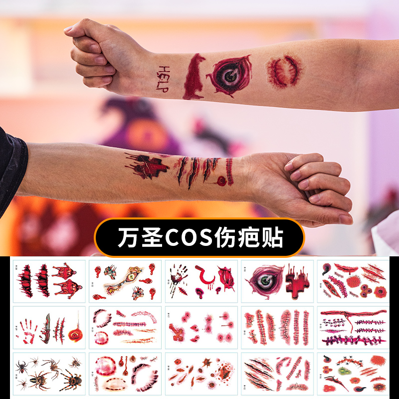 万圣节装饰伤疤贴纸儿童成人装扮拍照道具派对游乐园幼儿园场景布置无毒手臂纹身贴仿真血浆氛围道具礼物diy