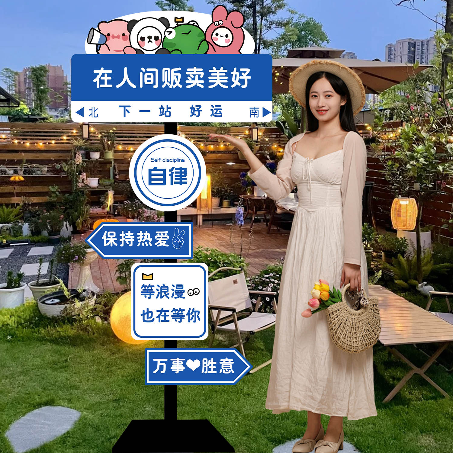 网红拍照打卡路牌导向牌我在xx等你路标广告班级文化布置定制指示牌支架高中培训辅导班机构装饰提示牌