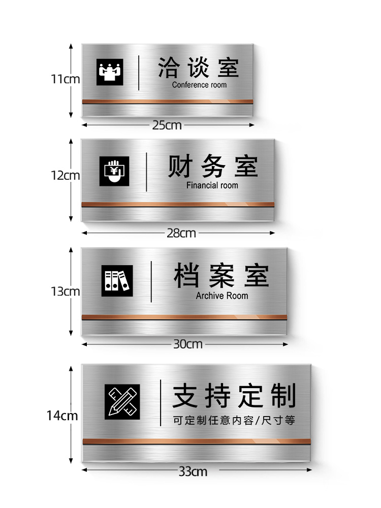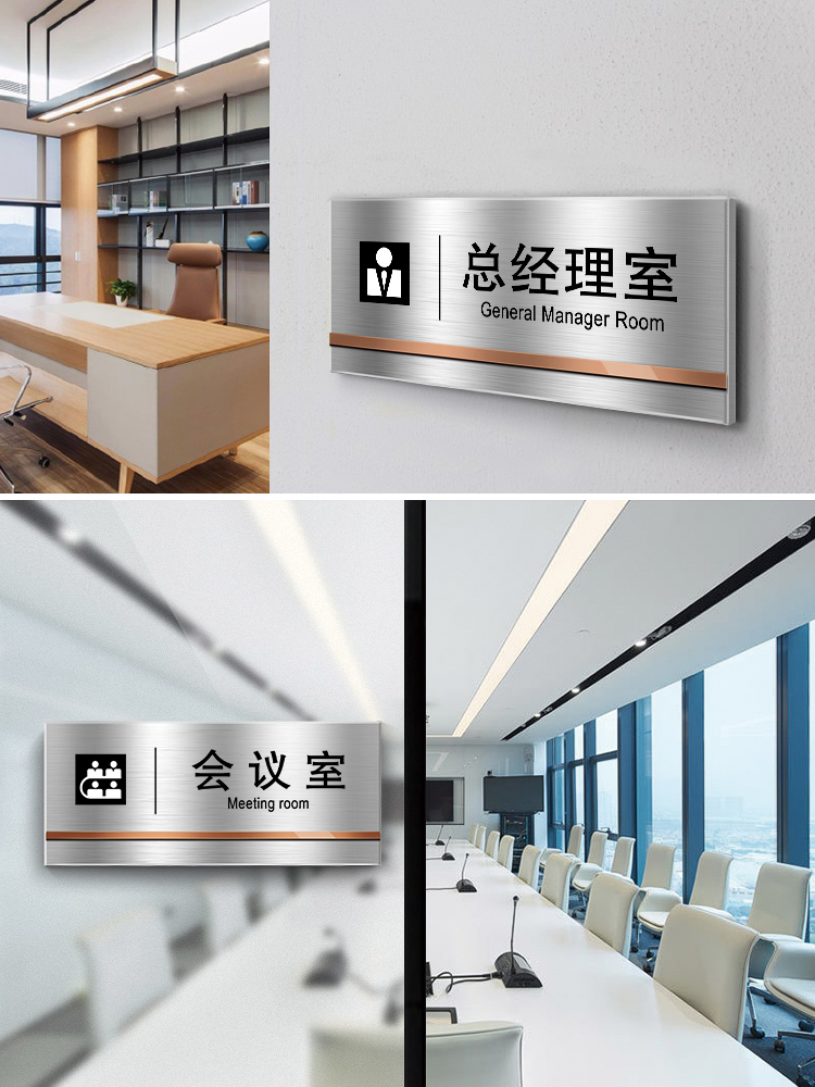 不锈钢总经理室办公室门牌科室牌指示标识牌定制公司部门董事长门口提示会议室财务仓库标志订制挂牌创意墙贴