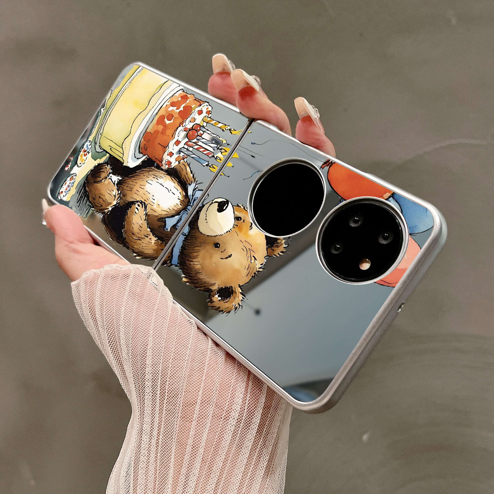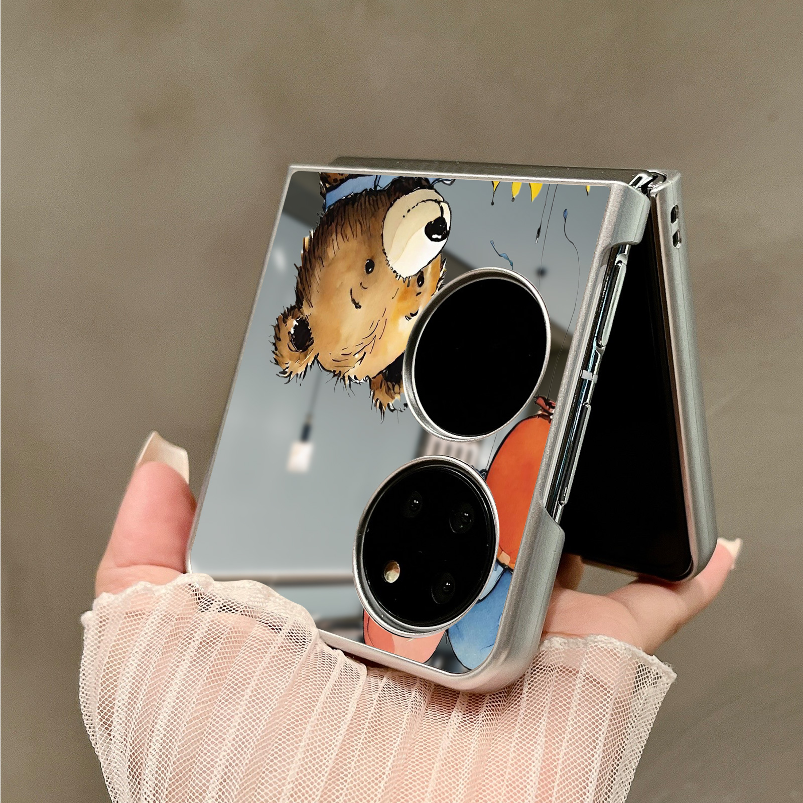 热瓜适用华为P50pocket手机壳Pocket2折叠屏保护套银色生日快乐笑脸小熊镜面新款pockets创意高档视窗全包套