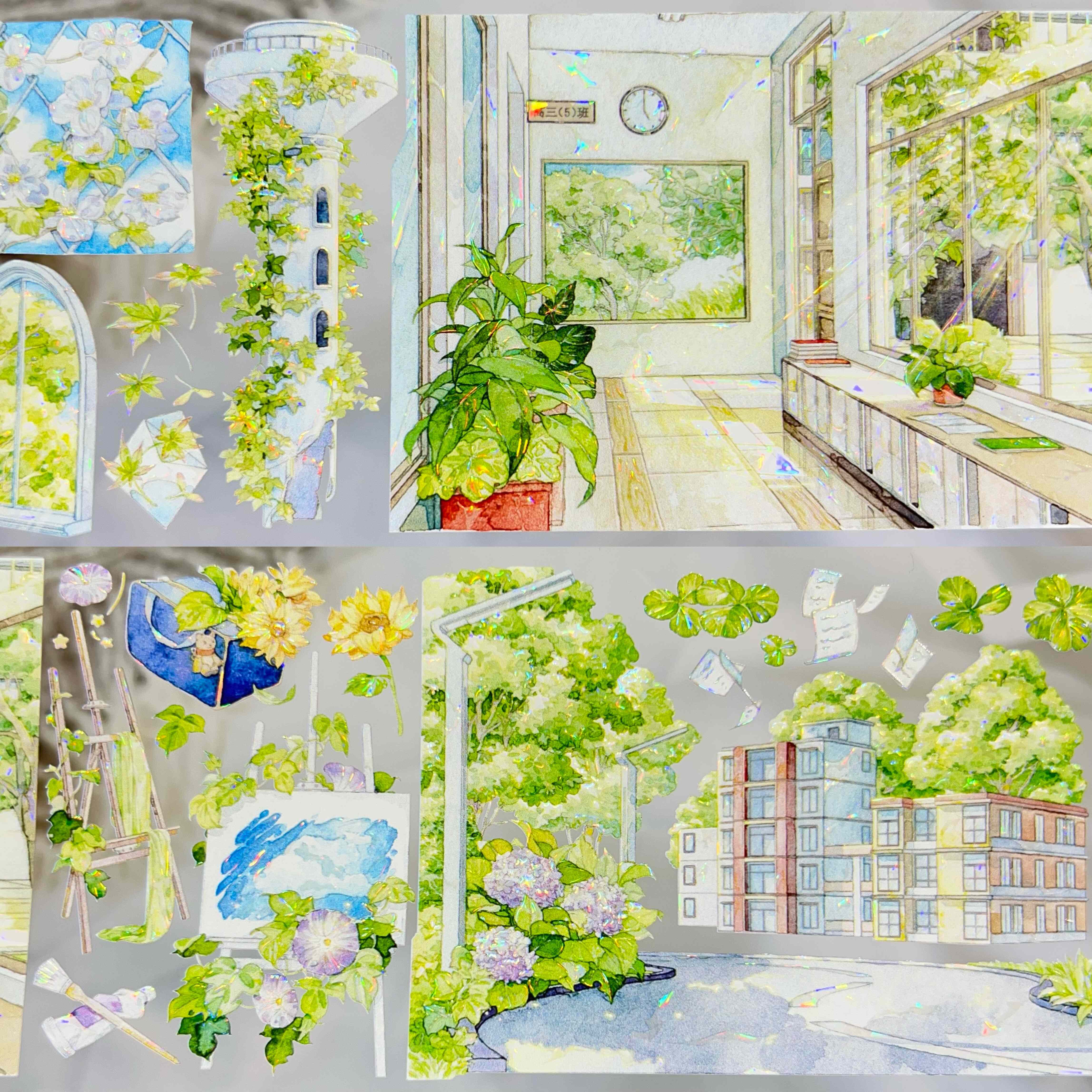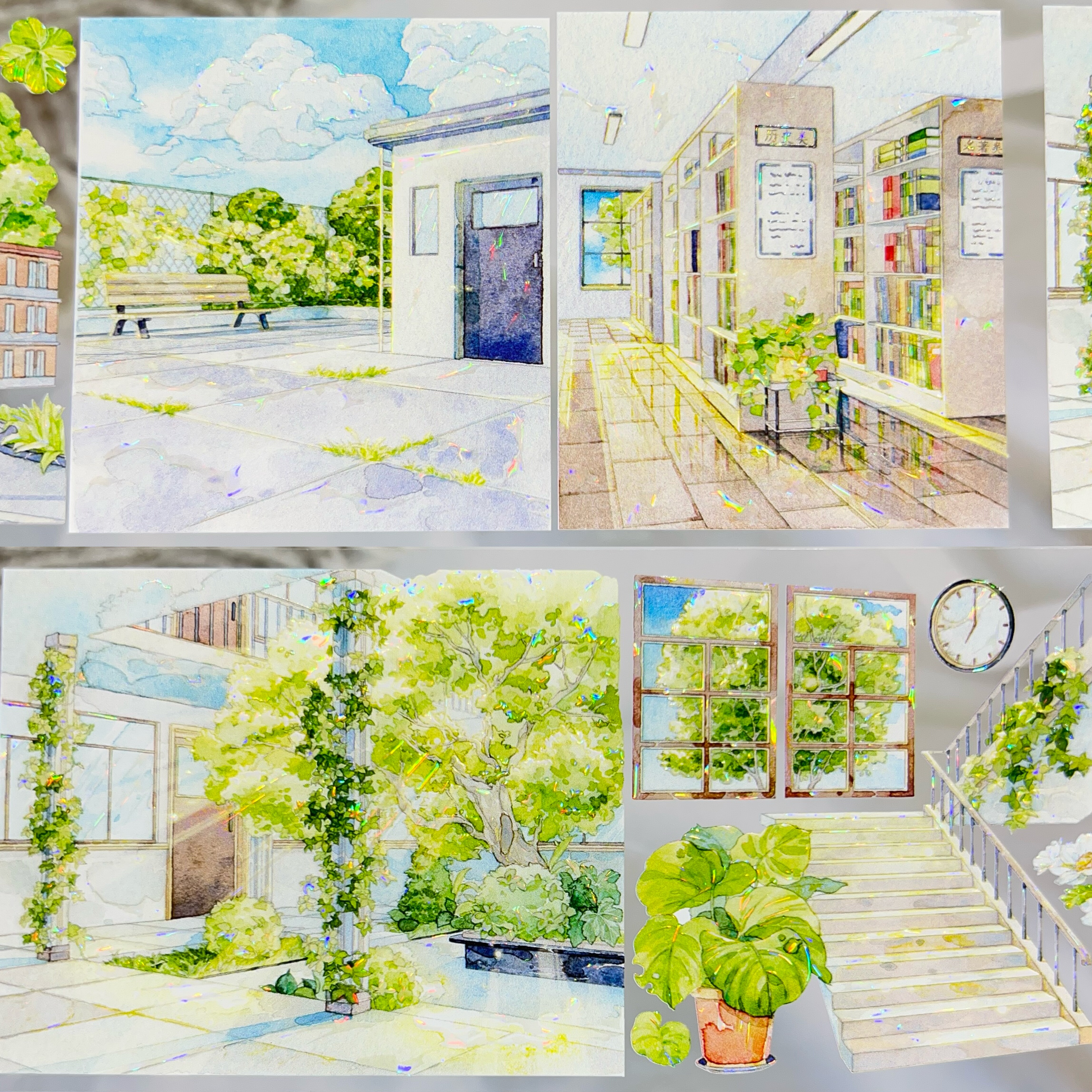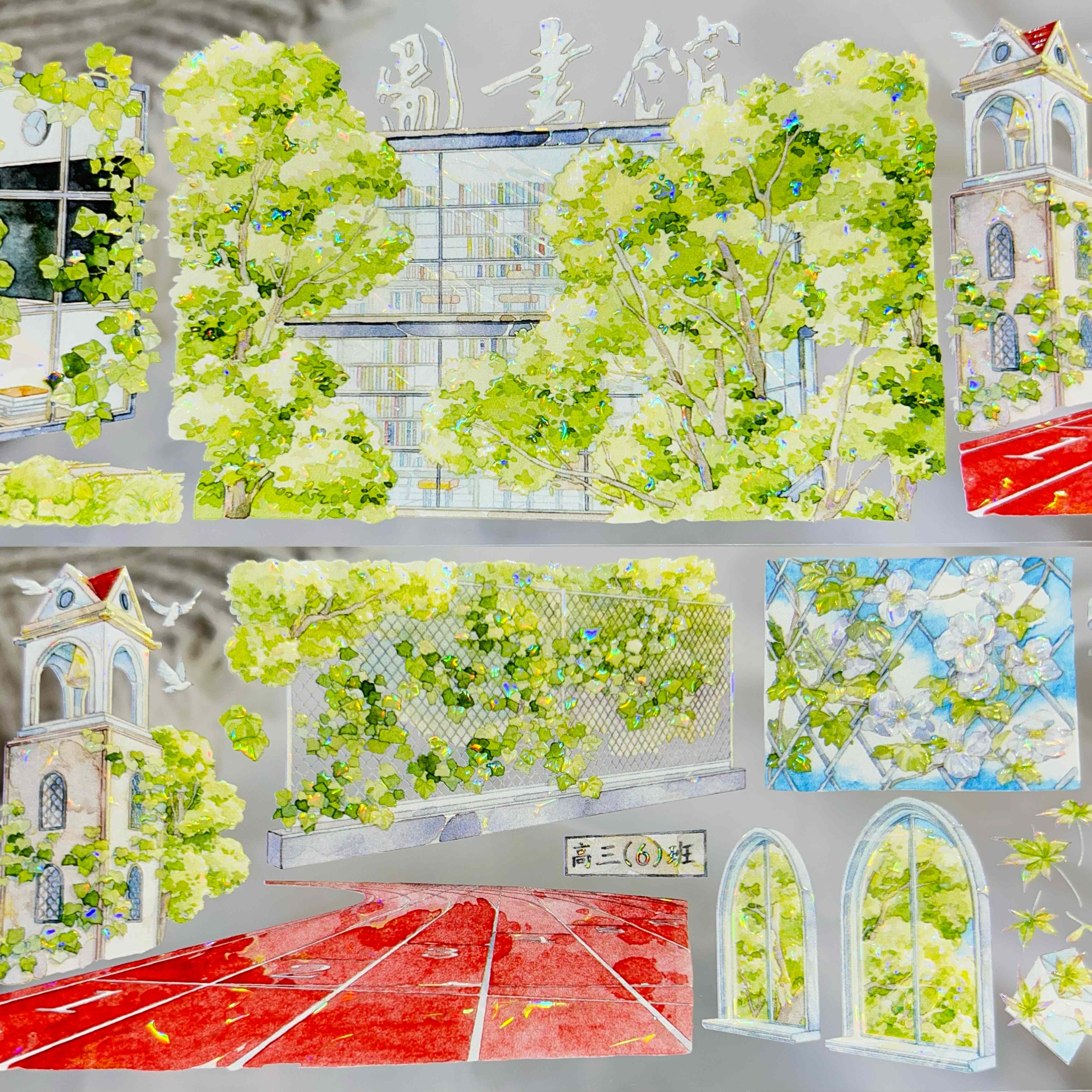 予星社分装手账胶带肆夏浪屿校园绿景流麻咕卡蓝色海浪流麻咕卡