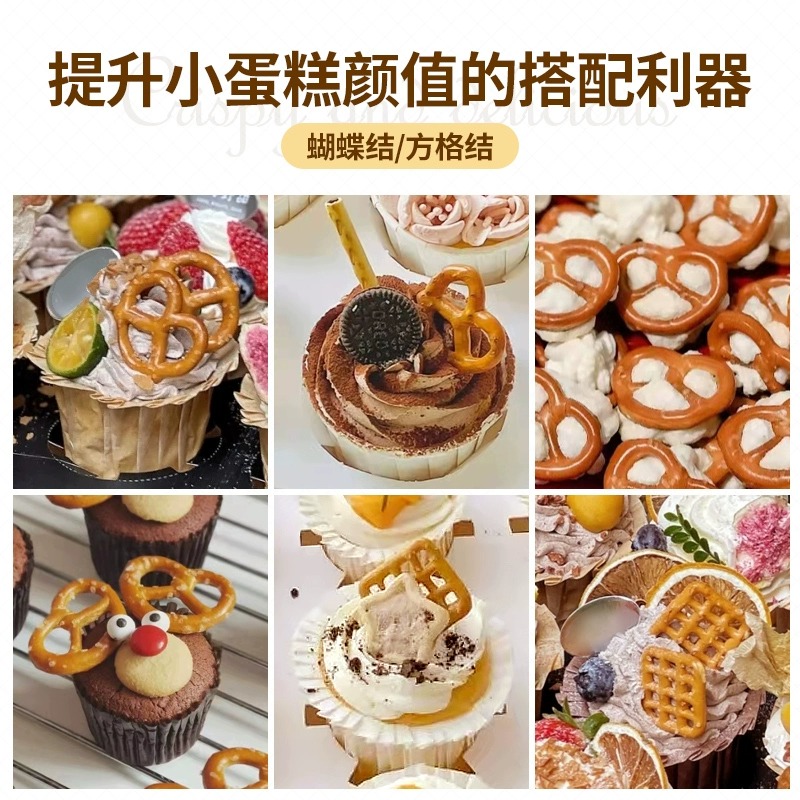 碱水结饼干蛋糕装饰摆件网格蝴蝶面包结混合纸杯甜品烘焙点缀商用