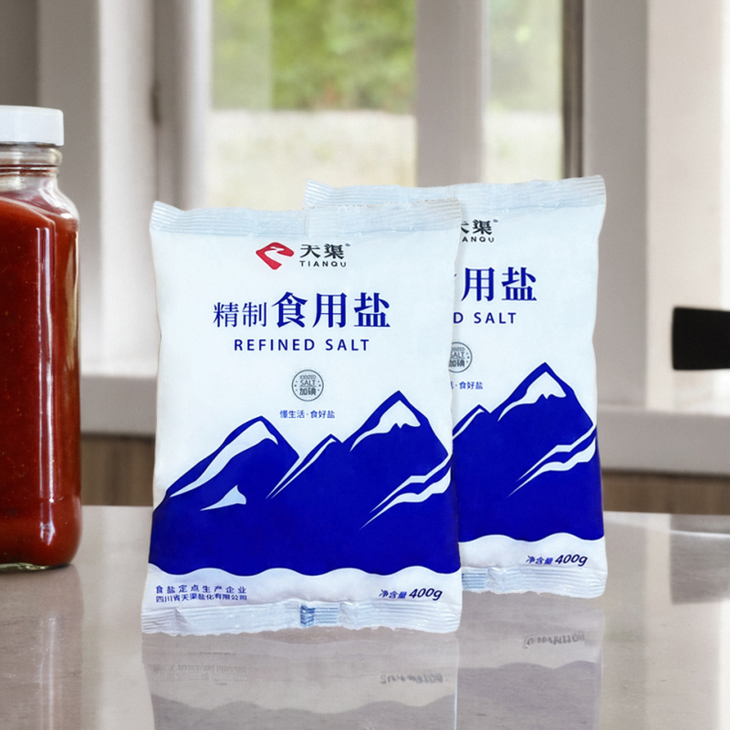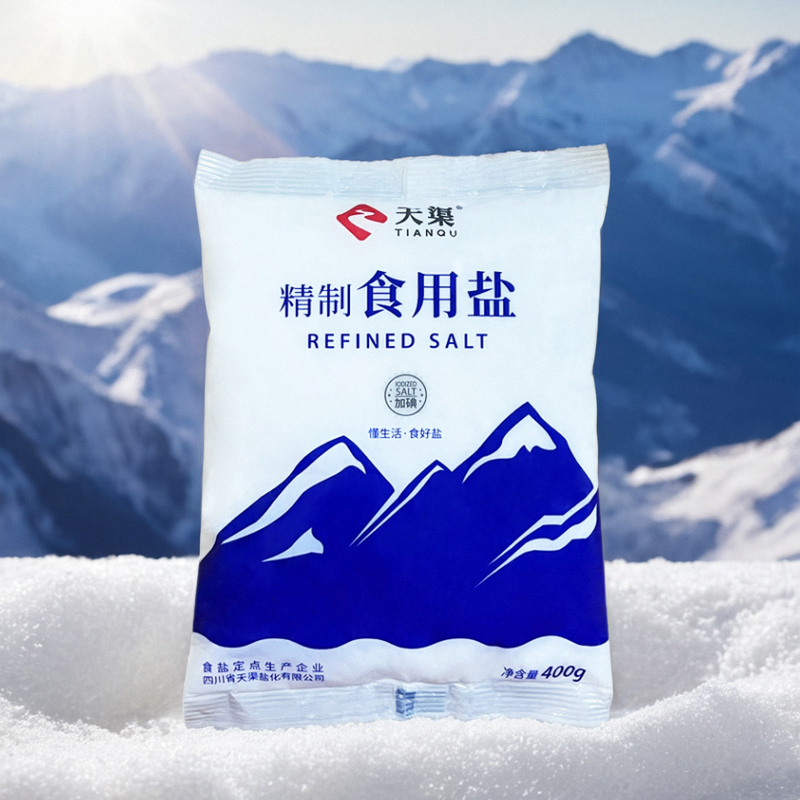 天渠加碘精制食用盐400g*2袋家用餐饮炒菜腌制深井矿盐细食盐调味