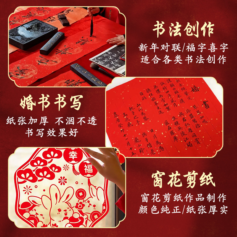 万年红宣纸加厚洒金老式红纸大张四尺书法专用结婚用写字压井盖福字a4刻纸剪纸正方形A3手写挥春对联红纸斗方