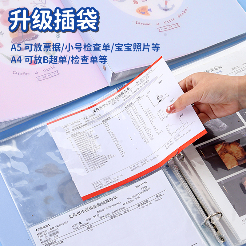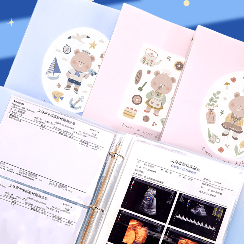 孕检收纳册孕期档案册活页可加页产检怀孕记录册医院报告单b超检查单收集册文件夹透明插页产检资料收纳袋