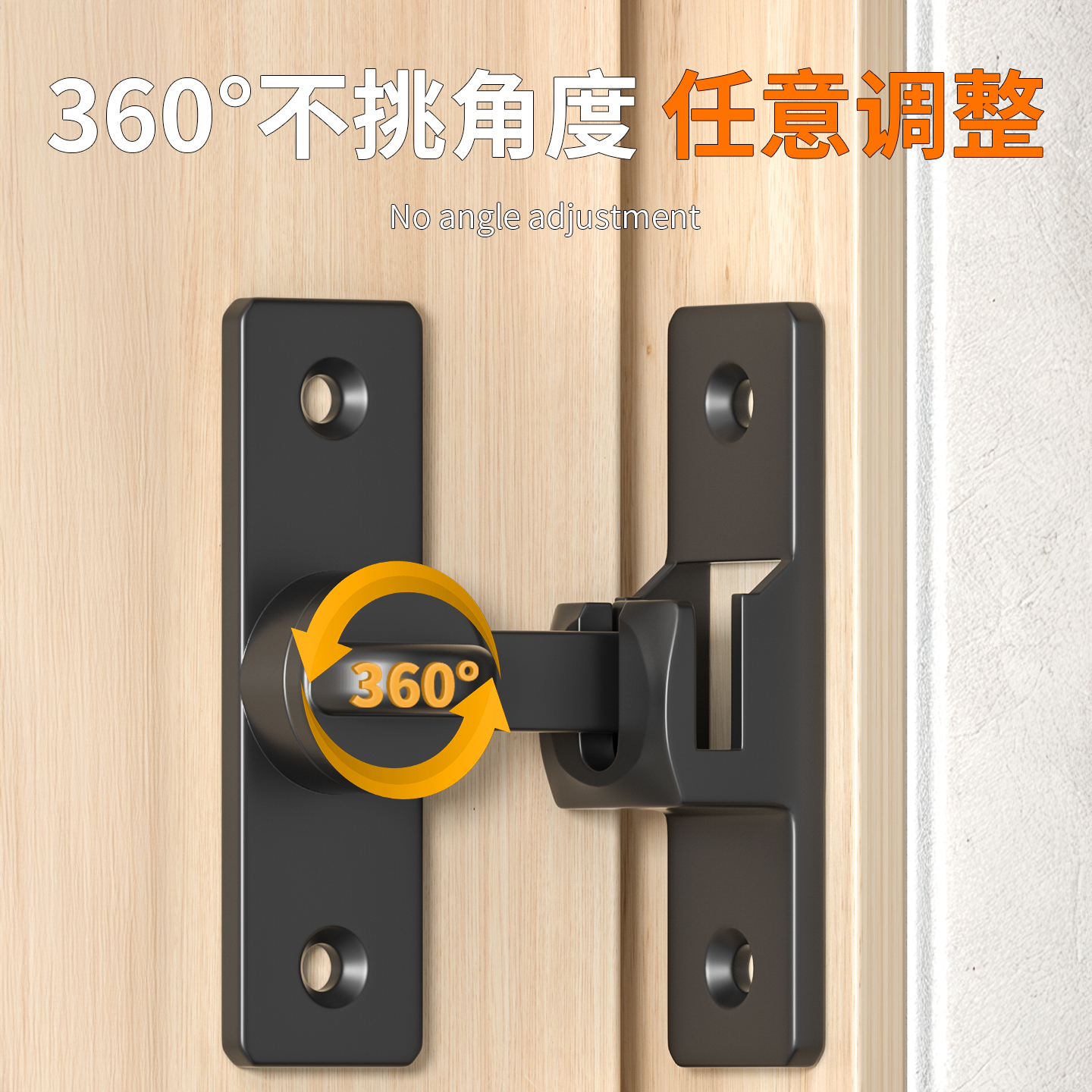 免打孔卧室门栓搭扣90度推拉移门锁卡扣卫生间房门锁防盗门扣木门