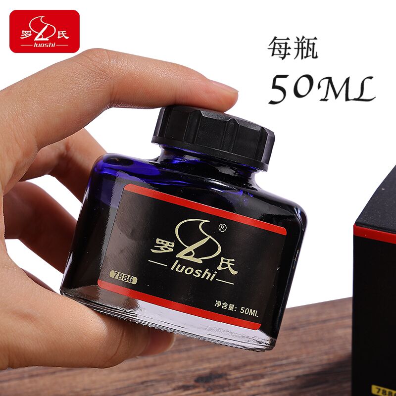 罗氏墨水50ml大瓶高级非碳素不堵笔纯黑色纯兰墨兰红墨水钢笔学生用不赌笔练字教师专用蓝黑色钢笔通用墨水