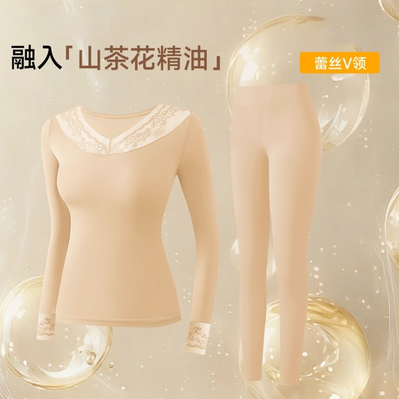 美肤保暖内衣女肌底衣无痕高弹蕾丝边秋衣秋裤女士秋冬保暖套装