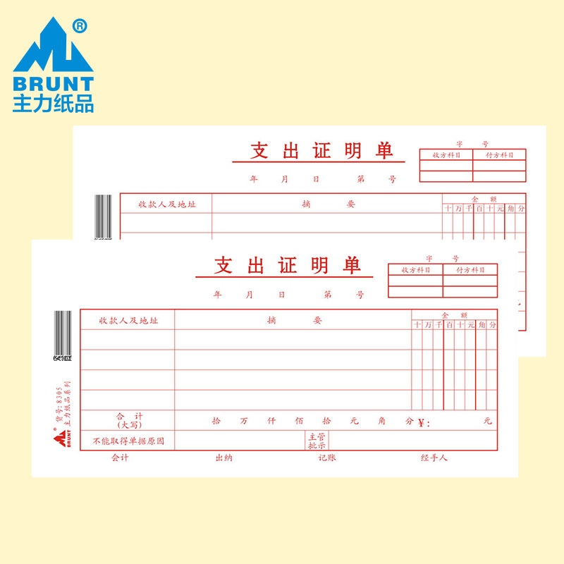主力纸品支出证明单通用35开70克双胶纸现金审批采购差旅费报销凭证会计办公报销票据单据定制30页20本装8305