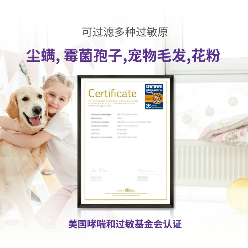 3M空调静电滤网T3病毒强滤型过滤雾霾PM2.5花粉尘螨除毛发细菌