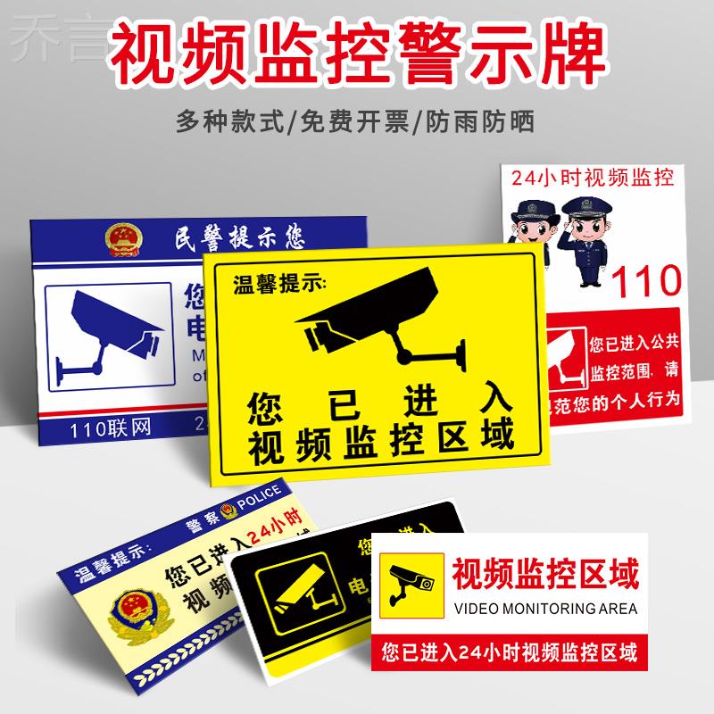 内有监控警示牌请洁身自好温馨提示牌24小时录像银行超市偷一罚十警示贴标识牌视频监控区域指示标志标语