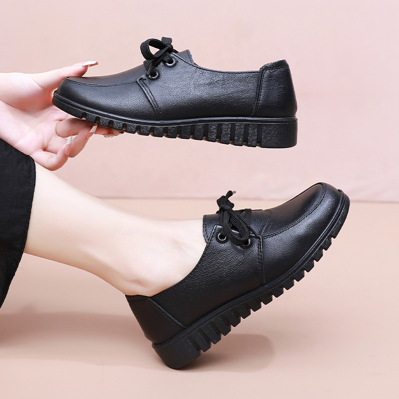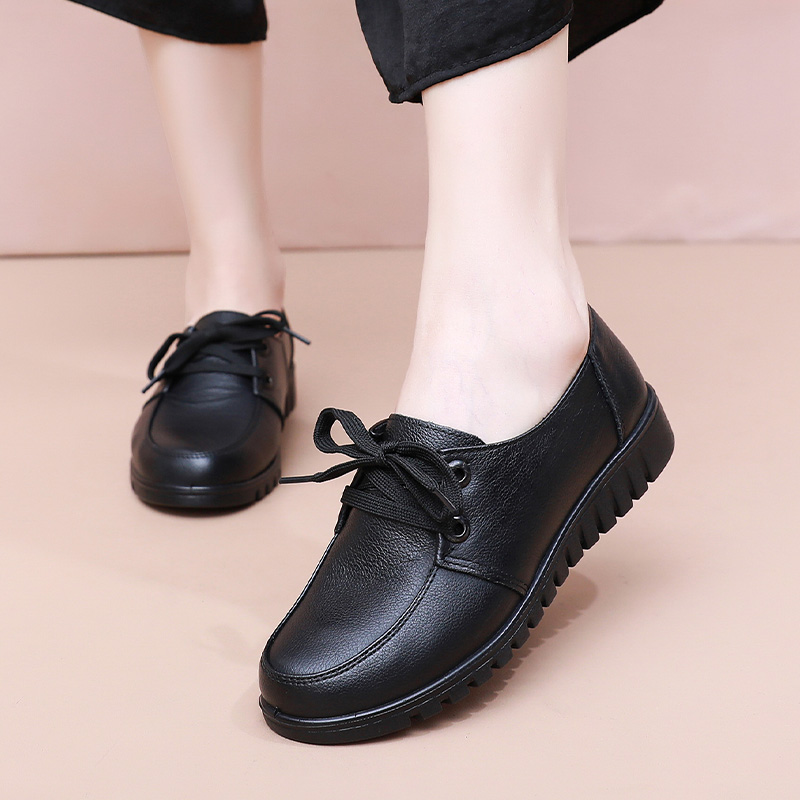 牛筋底妈妈鞋真皮防滑软底休闲中老年单鞋舒适蝴蝶结中年春秋皮鞋