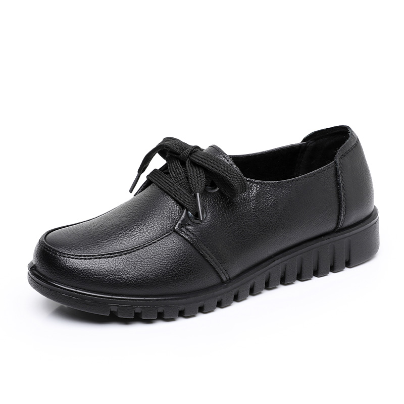 足力建2025新款真皮妈妈鞋舒适防滑中老年单鞋中年皮鞋女系带平底