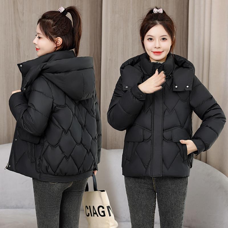 2025宽松显瘦工作棉袄短款秋冬新款轻薄连帽韩版大码羽绒棉衣外套