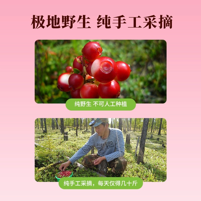大兴安岭有机野生蔓越莓原浆无添加越橘NFC果蔬汁富含花青素鲜果