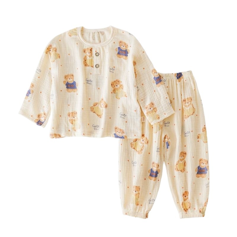 儿童纯棉纱布睡衣春秋a类100%全棉空调服男童女童长裤家居服睡觉