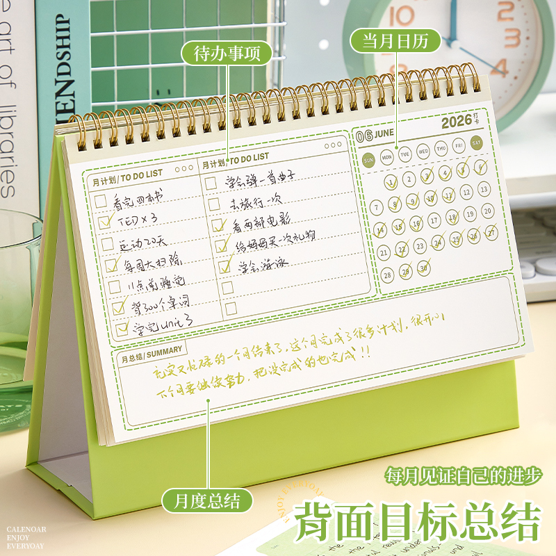 台历2026年新款创意简约办公桌面摆件月历卡通日程计划本ins风考研年历广告定制马年工作打卡小日历订做印刷