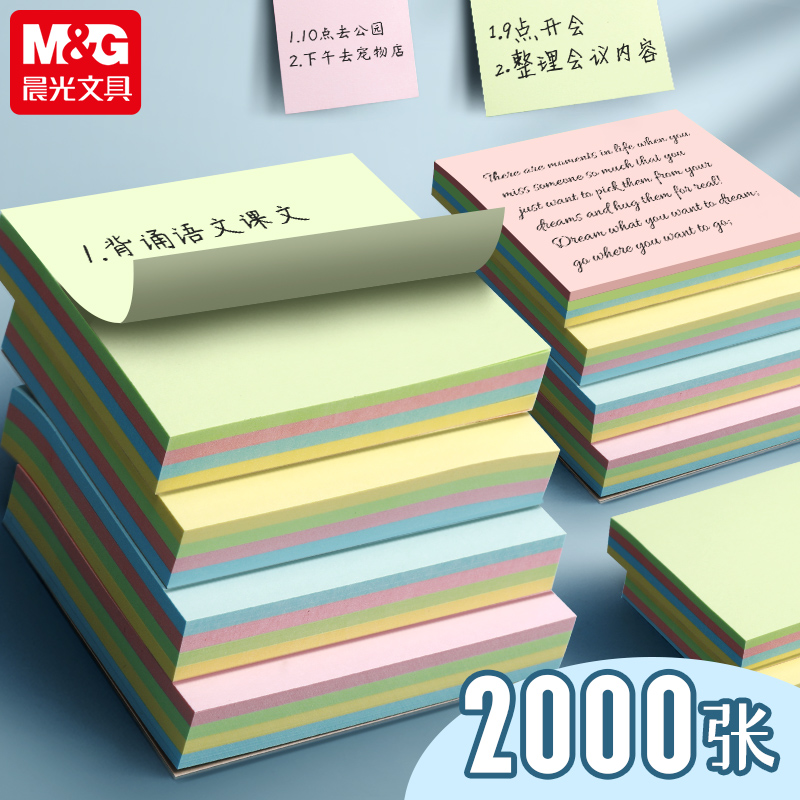 晨光便利贴学生用便签贴考研多色标签贴纸自粘撕取不留痕记事贴粘性办公室便条备忘记事留言彩色小条优事贴
