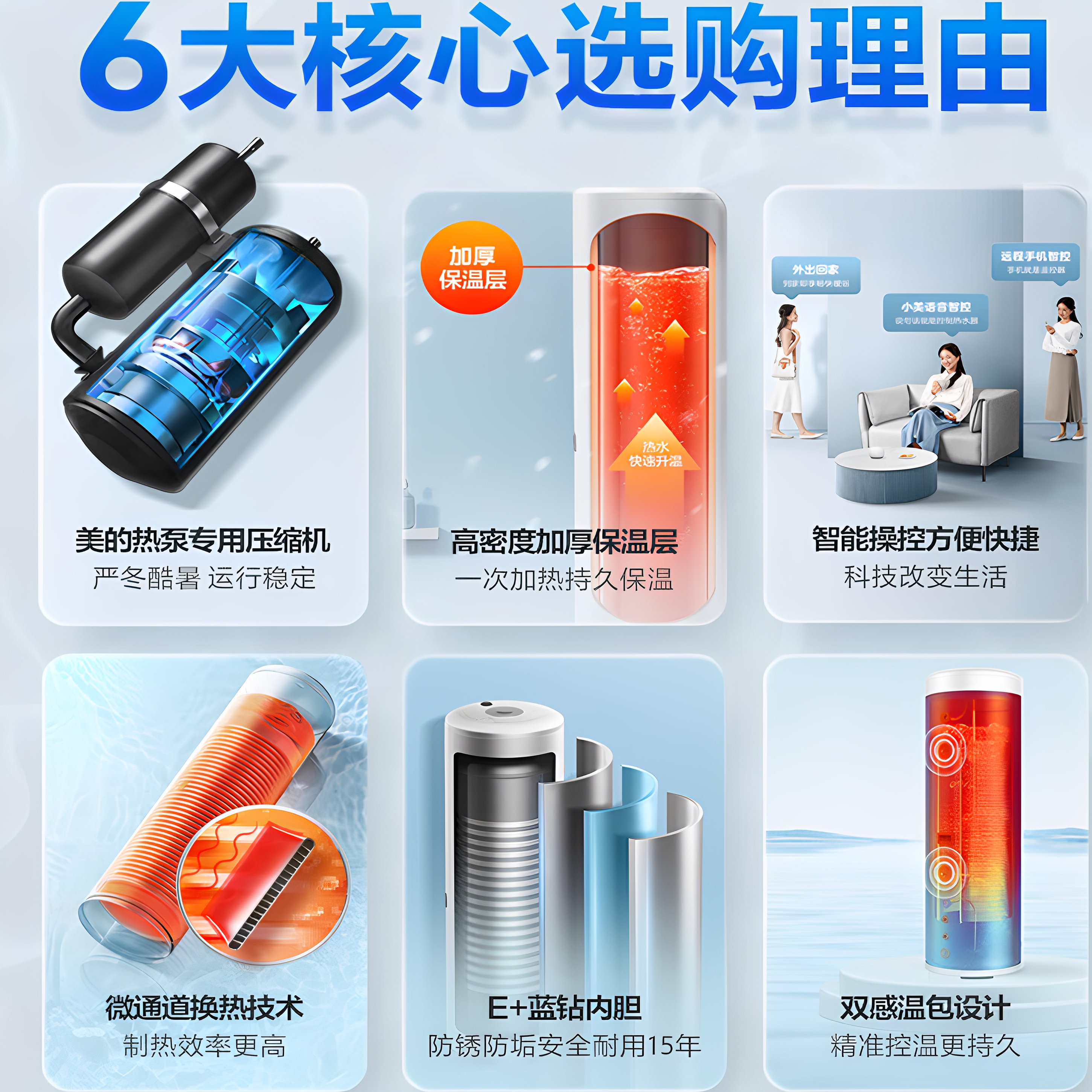 美的空气能热水器150升200L300升家用变频省电一级能效空气源热泵