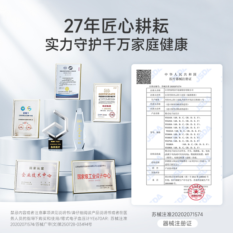 鱼跃电子血压计老人血压测量仪家用高精准量血压仪670AR