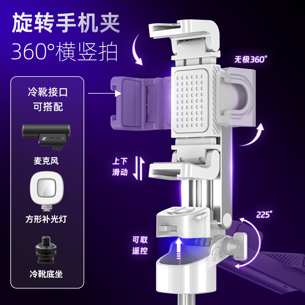 国庆专用】手机自拍杆2025新款旅游便携式落地通用三脚架360度旋转蓝牙迷你手持拍照直播神器防抖支架演唱会