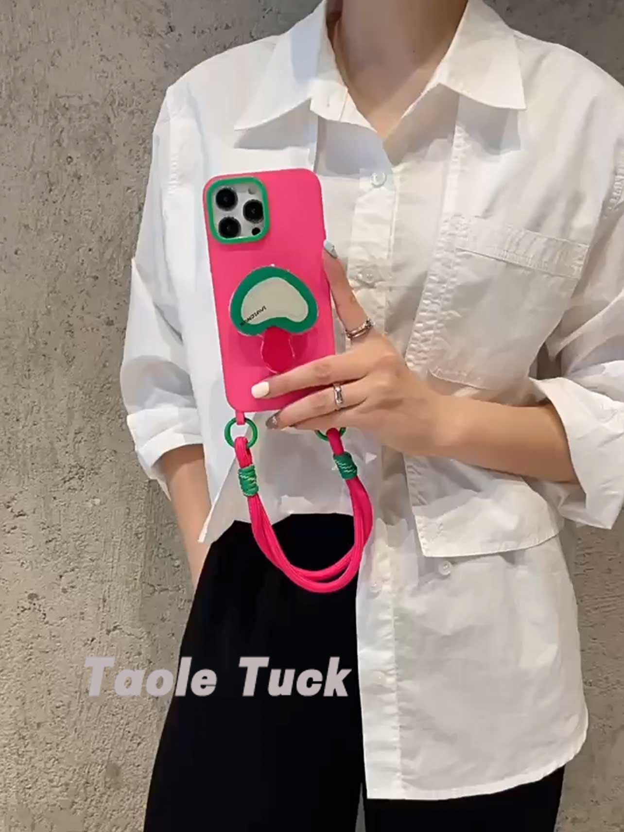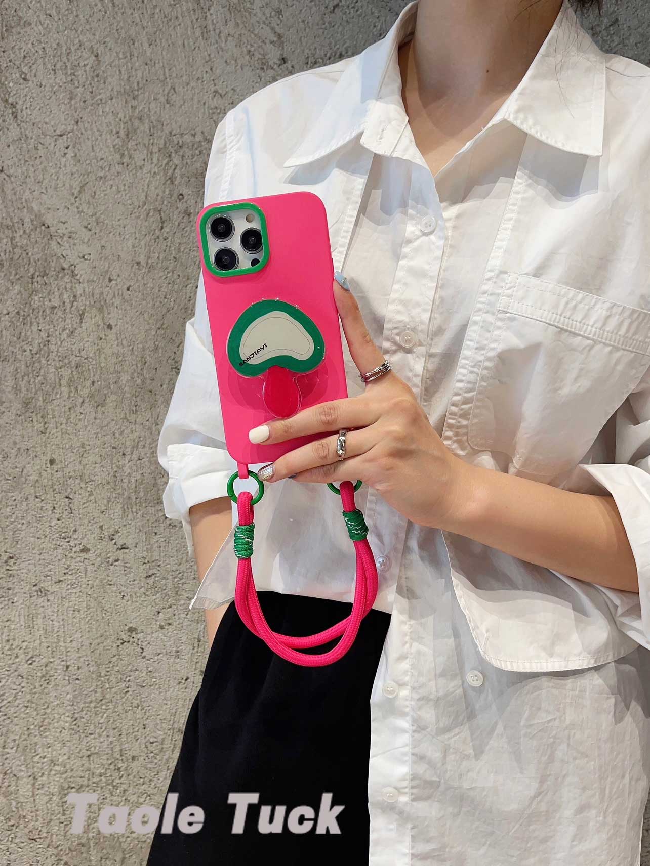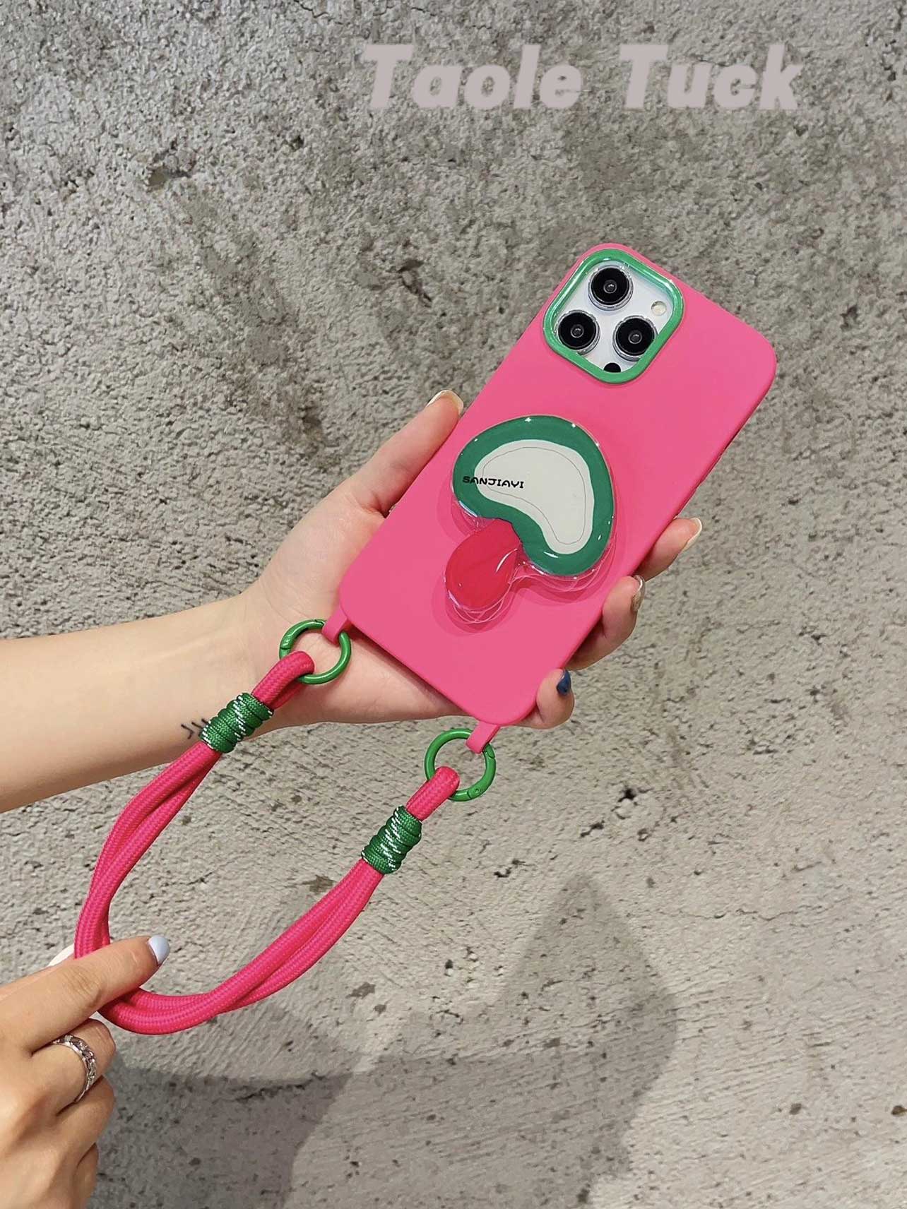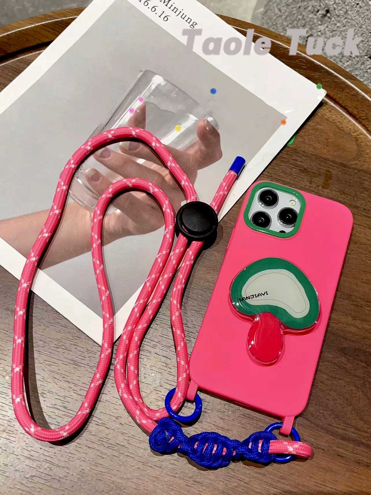 韩国ins撞色蘑菇支架背贴式手机壳苹果14Promax新款手腕提短绳适用苹果iPhone13个性12时尚可调节挂绳侧背女