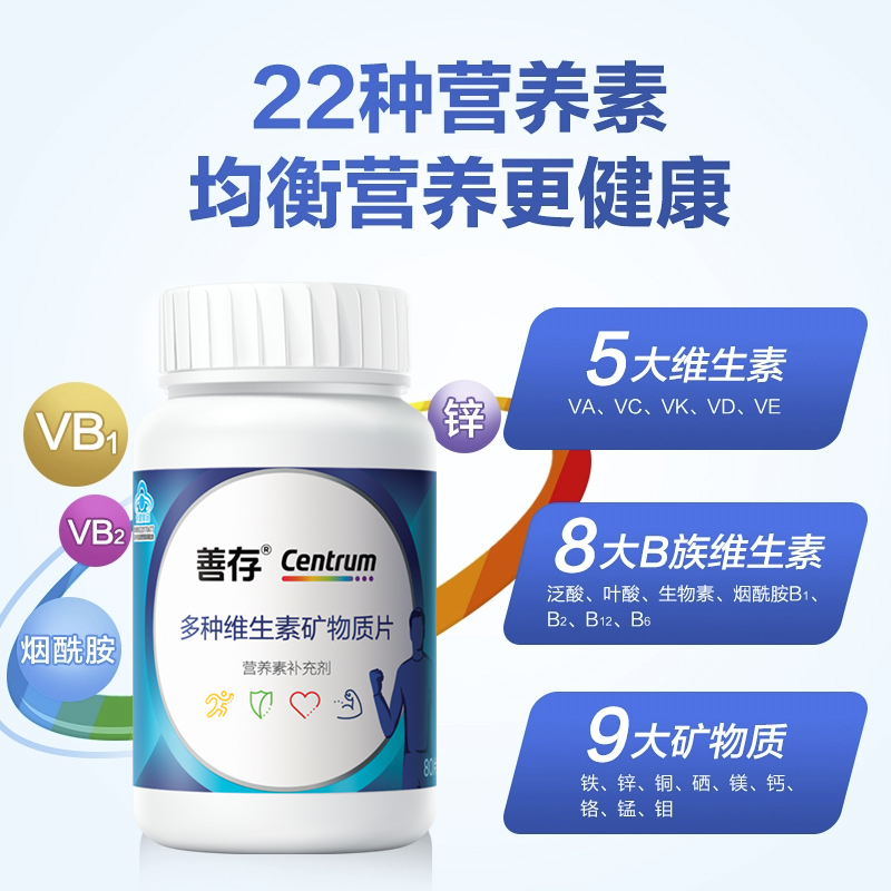 善 存男性B族复合维生素vc维生素b80片多维生物素锌硒片钙镁