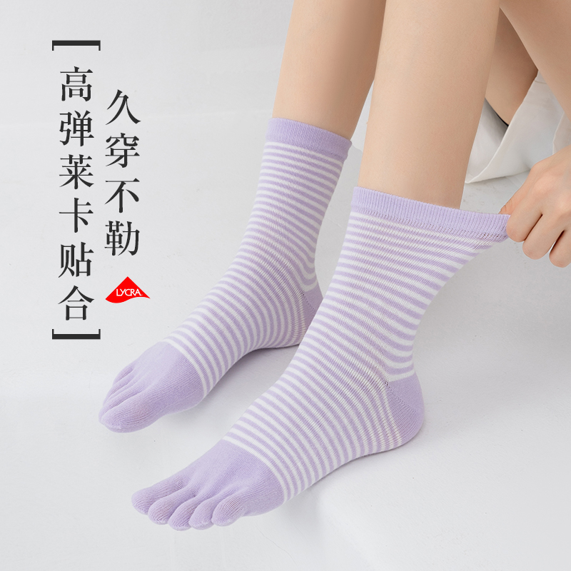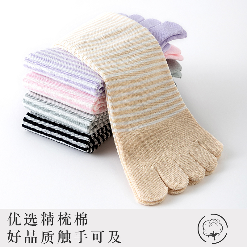 亲棉真织五指袜女纯棉中筒袜防臭防脚气分趾袜无骨秋冬季加厚条纹