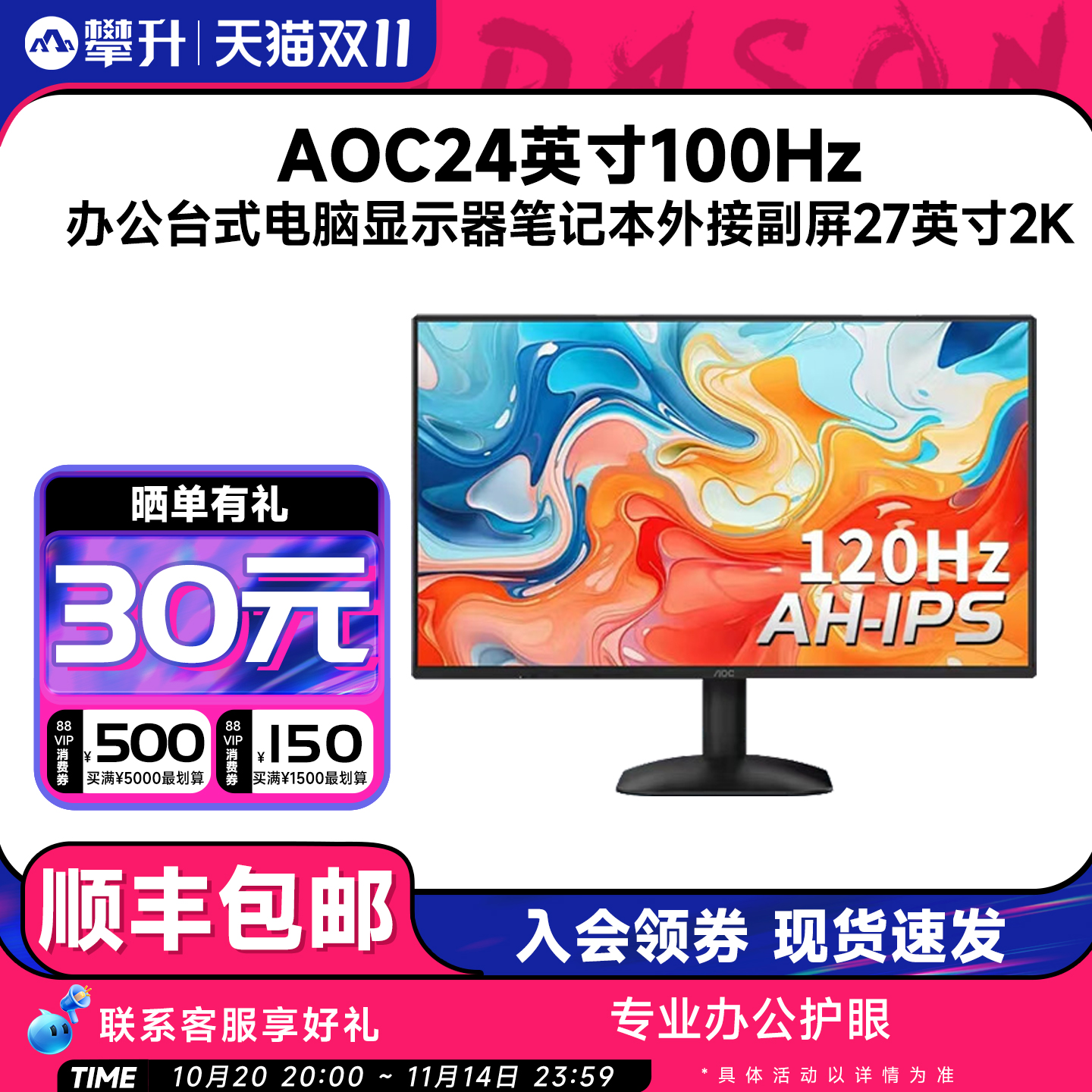 AOC24英寸100Hz办公台式电脑显示器24B31H笔记本外接副屏27英寸2K