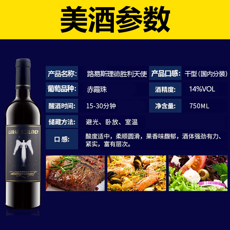 法国进口干红葡萄酒14度整箱天使750ml红酒赤霞珠过节聚会送礼装