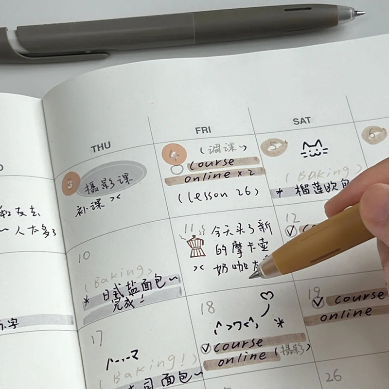 Planwith三色笔按动多色合一中性笔高颜值彩色学生做笔记专用标记笔多功能模块笔粉色红笔蓝笔错题订正记号笔